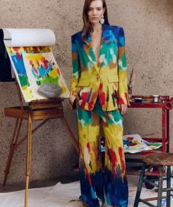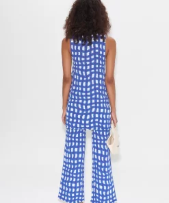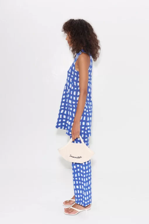 SIMONMILLER Women’s Knits By Jabber Pant In Klein Blue Wavy Gingham | Klein Blue Wavy Gingham